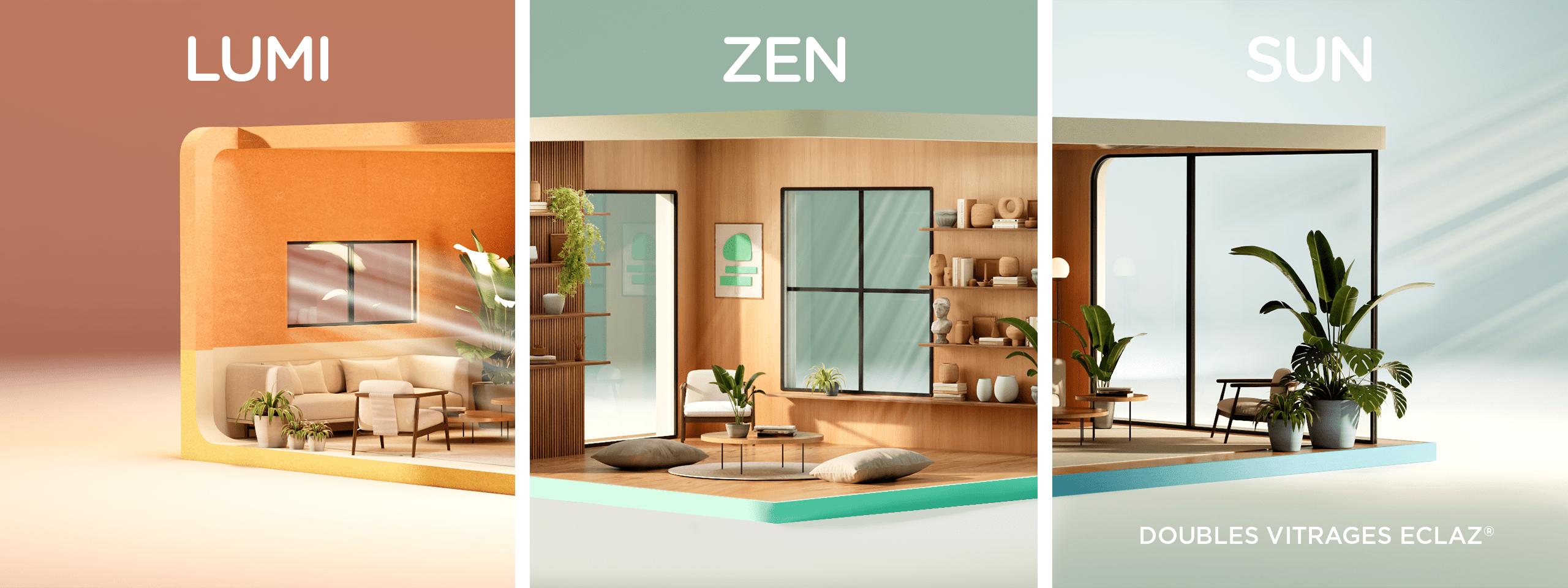 Grâce à une technologie innovante et brevetée, ECLAZ® LUMI est le double vitrage le plus transparent et laisse passer 6 % de chaleur solaire de plus qu’un double vitrage isolant classique.